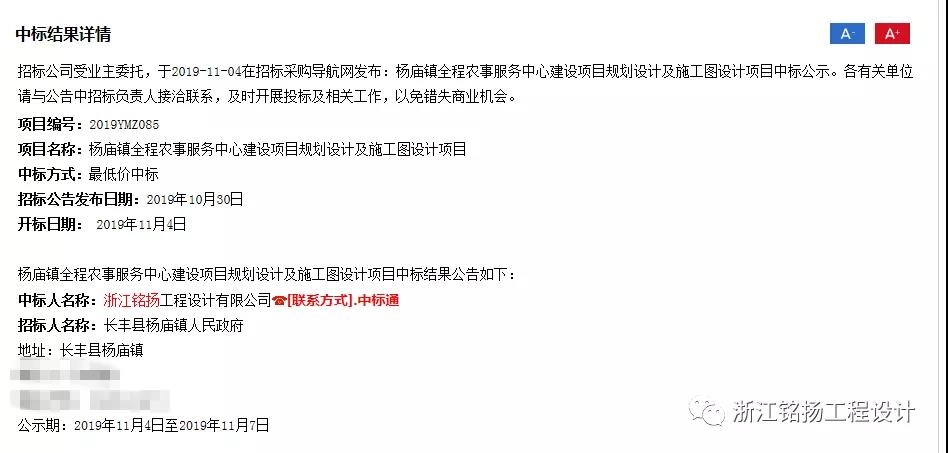 恭喜銘揚工程設(shè)計中標安徽省長豐縣楊廟鎮(zhèn)全程農(nóng)事服務中心建設(shè)項目規(guī)劃及施工圖設(shè)計。中標價:110500元。
