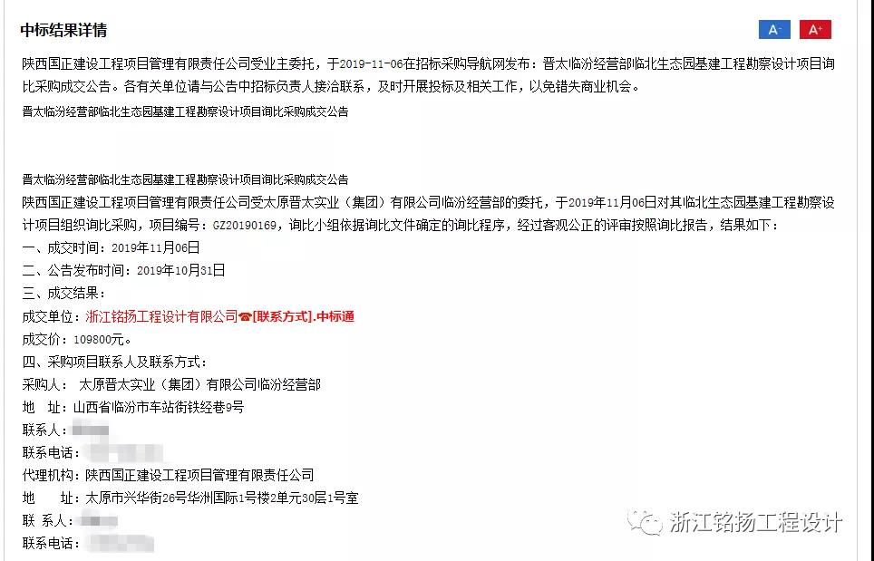 恭喜銘揚工程設(shè)計中標(biāo)陜西省臨汾市晉太經(jīng)營部臨北生態(tài)園基建工程勘察設(shè)計項目。中標(biāo)價:109800元。